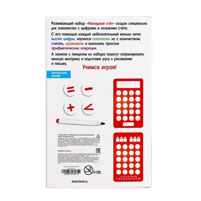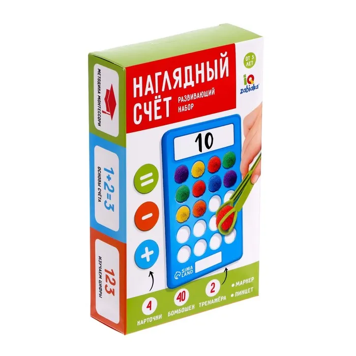 Обучающий набор «Наглядный счёт» познакомит малыша с цветами, цифрами. Ребёнок научится считать и выполнять много разных логических задачек.