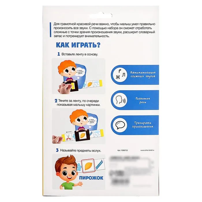 Развивающий набор «Назови звук» поможет малышу потренировать речь и произношение всех звуков, а также расширить словарный запас и потренировать внимательность.