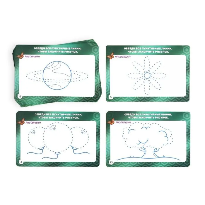 - Рисовашки — здесь предстоит дорисовывать то, что выделено на картинке пунктирной линией.