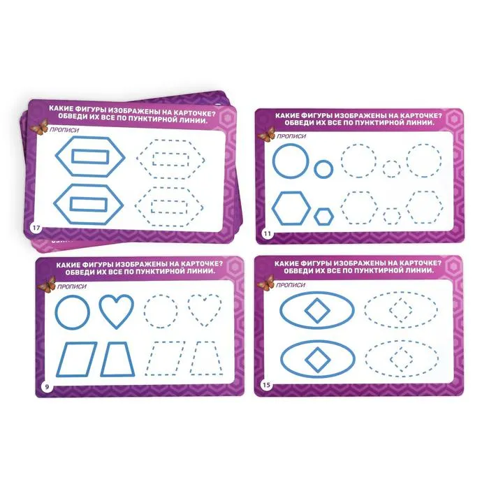 С набором обучающих карточек ребёнок подготовит руку к письму и познакомиться с основными геометрическими фигурами.