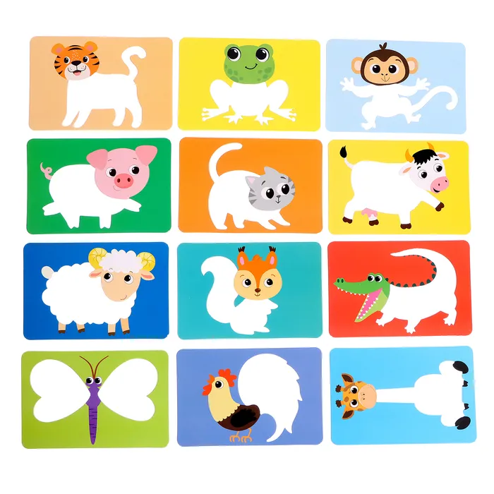 - Выложите 3–4 карточки в ряд и сами опишите животное с одной из карточек, не называя его. Задача малыша — отгадать, о каком животном вы рассказывали, и указать на него.