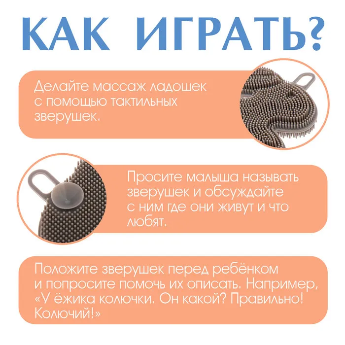 - Делайте массаж ладошек с помощью тактильных зверушек.