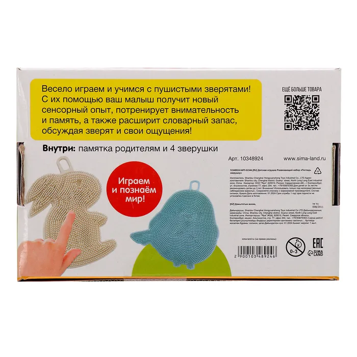 Развивающий набор «Погладь зверушку», 3+ — Характеристики