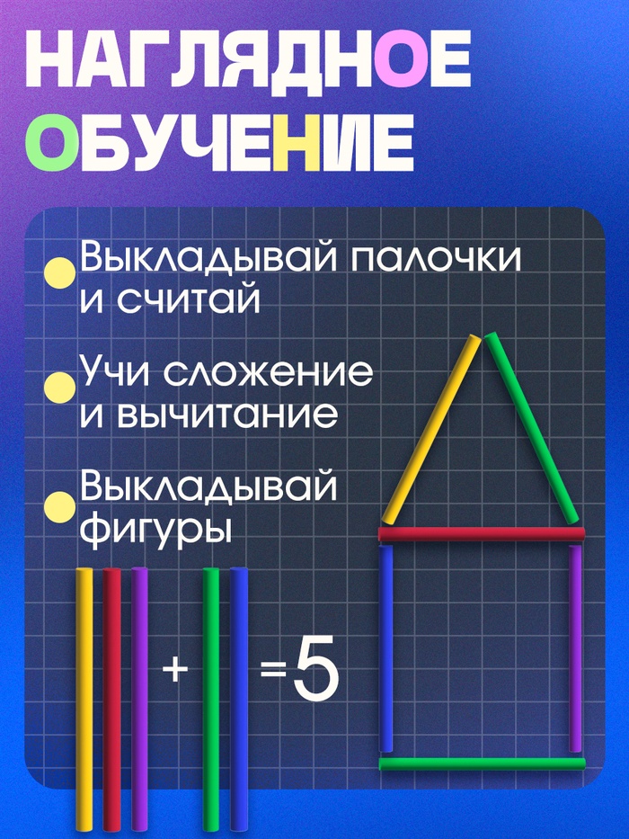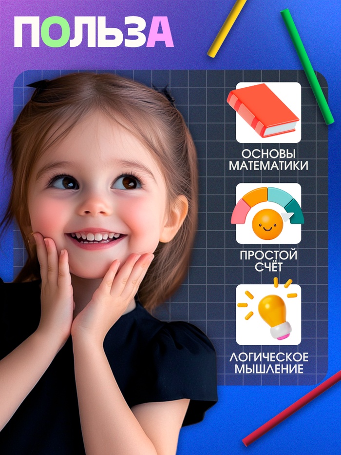 Использование набора помогает ребёнку на практике разобраться с базовыми математическими понятиями: сложением, вычитанием и сортировкой. Палочки можно укладывать в ряды, группировать по цветам или количеству, создавая основу для первых математических экспериментов.