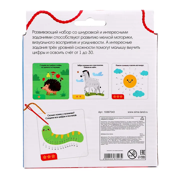 Развивающий набор «Шнуровка по номерам», 3+ — Характеристики
