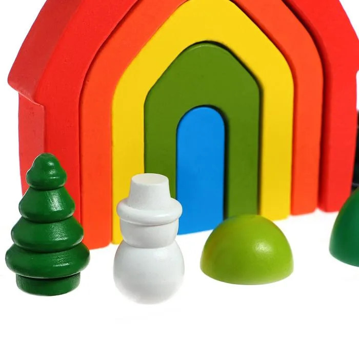 Элементы набора выполнены из экологичного материала — дерева — и покрыты безопасными для детского здоровья красками. Детали тщательно обработаны и не имеют острых углов.