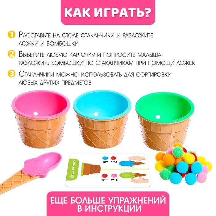 Развивающий набор «Собери мороженое», сортер по цветам — Характеристики