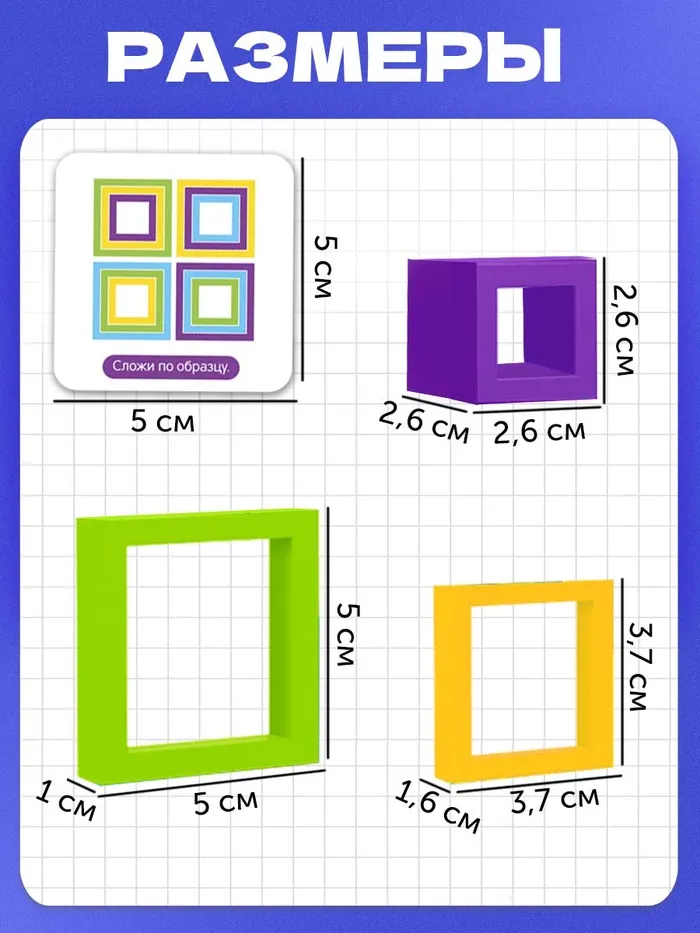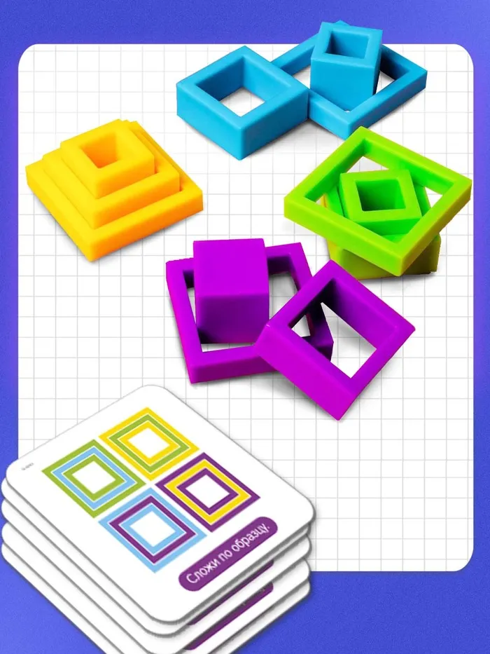 Набор «Собери по образцу» — это 12 умных квадратов и 10 развивающих заданий для настоящих гениев!