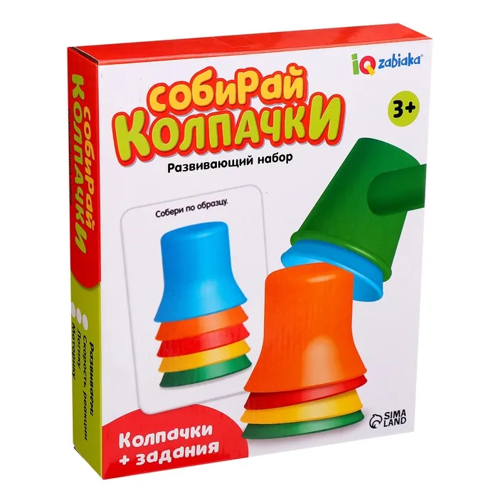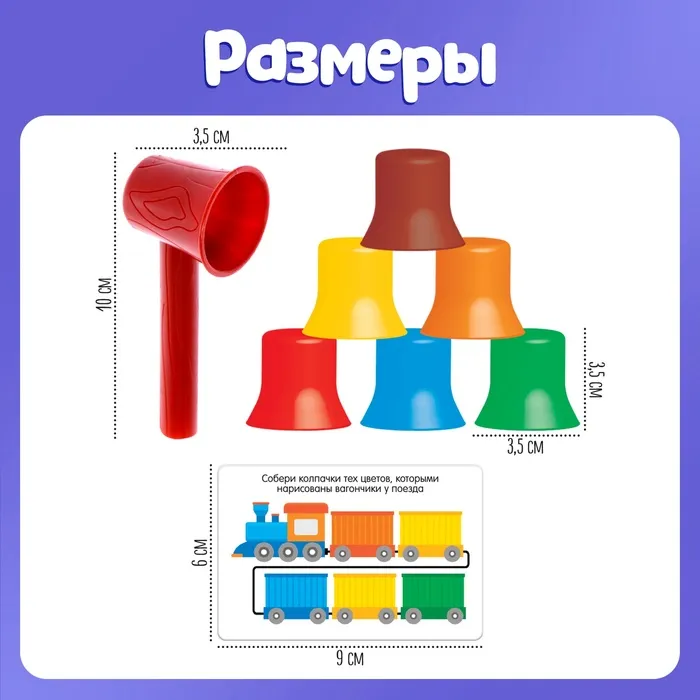 С этим развивающим набором ребёнок научится собирать цветные колпачки и строить из них башенки.
