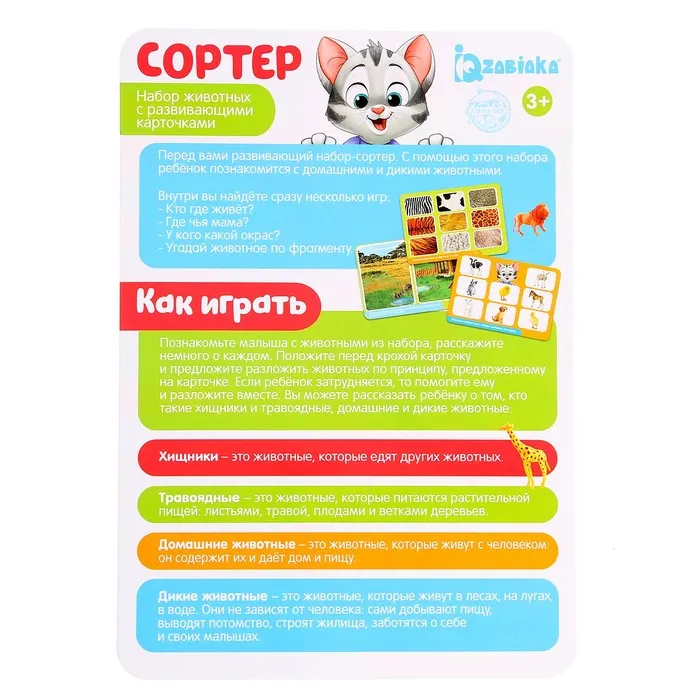 Развивающий набор-сортёр «Изучаем животных», по методике Монтессори, 3+ — Характеристики