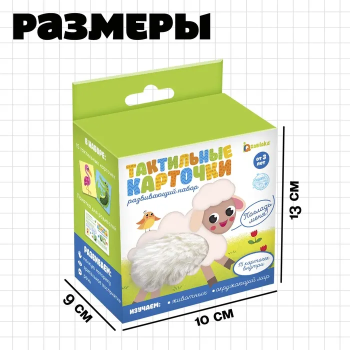 В этой необычной игре есть множество тактильных элементов на карточках с животными. Они представлены вкладками, соответствующими поверхности тела каждого зверька.