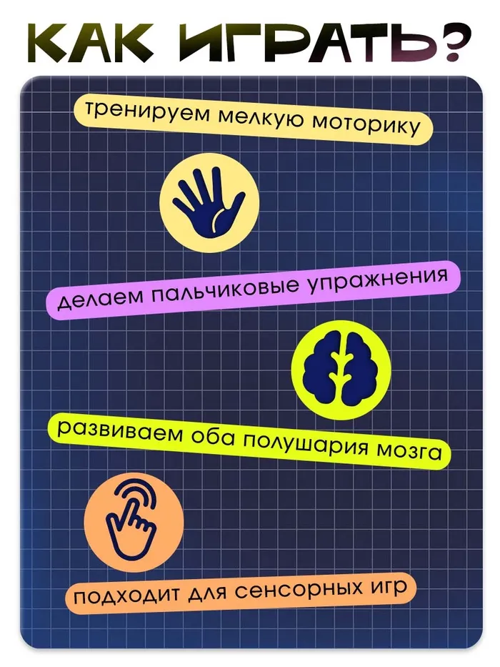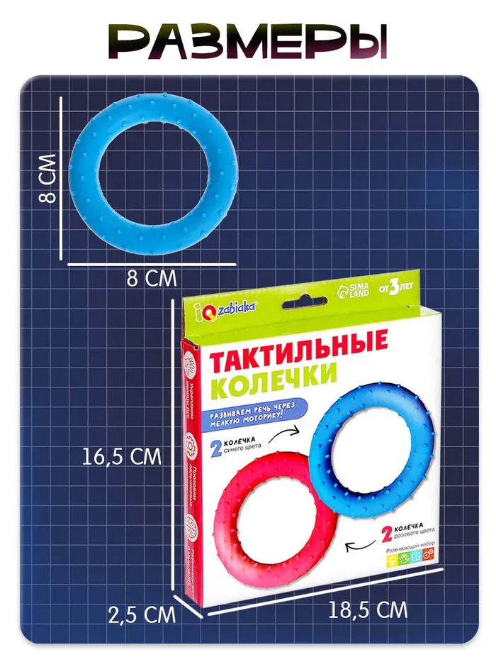 Развивающий набор «Тактильные колечки» поможет малышу укрепить мышцы рук и пальчиков, потренироваться проходить пальчиковые дорожки и выполнить нейроупражнения, способствующие стимуляции мозговой активности.