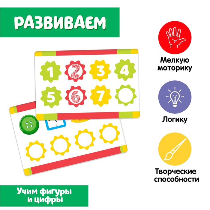 Благодаря развивающему набору со штампами узнавать новое станет легче и веселее. Игра поможет ребёнку изучить счёт и состав числа от 1 до 10, а также познакомиться с геометрическими фигурами.