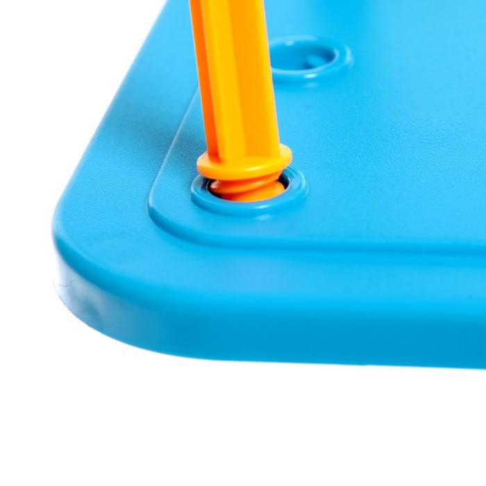 - Вставьте столбики в пластиковую основу и соедините их шнурком. Для этого проденьте его в специальные отверстия в столбиках.