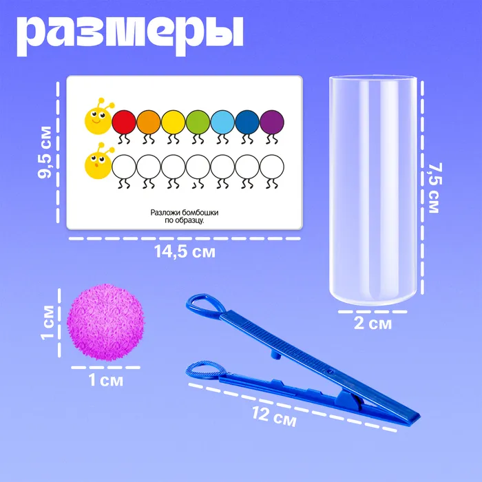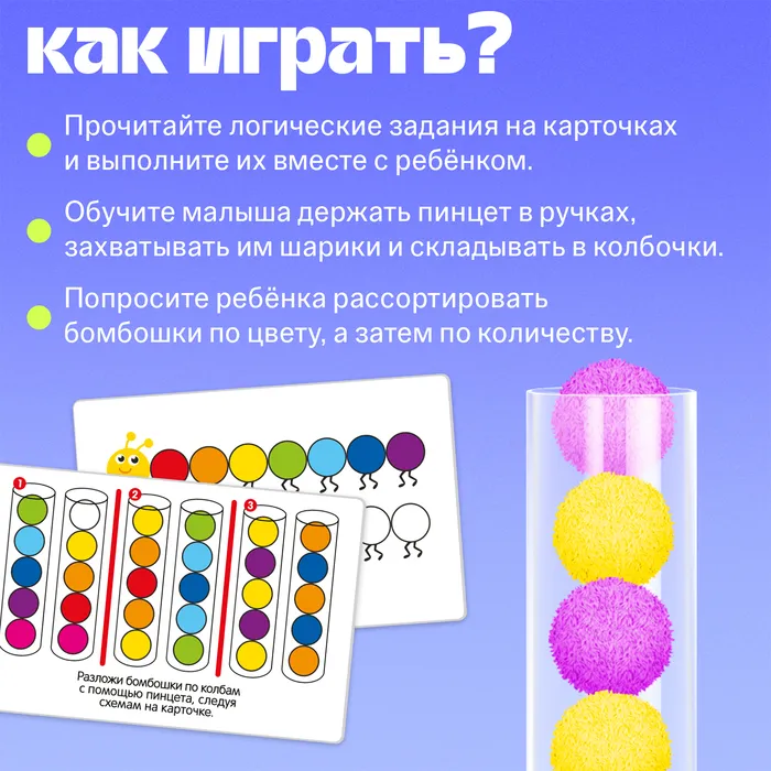 Развивающий набор «Цветные бомбошки: сложи по образцу», по методике Монтессори, 20 заданий, 3+ — Характеристики