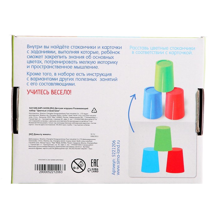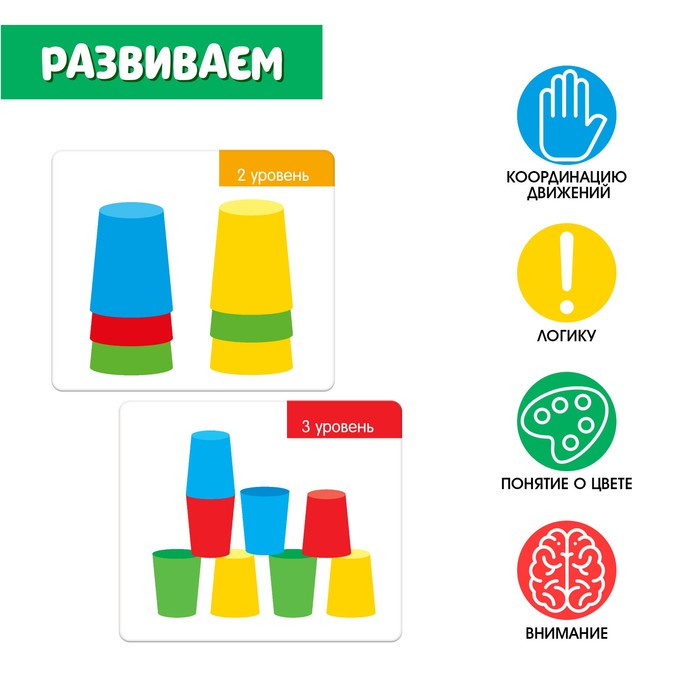 Развивающий набор «Цветные стаканчики» — Характеристики