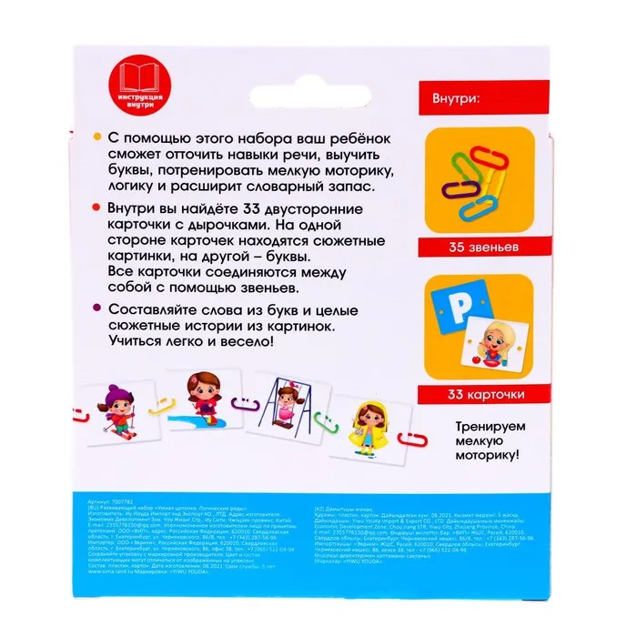 Развивающий набор «Умная цепочка. Буквы и логические ряды», учимся читать — Характеристики