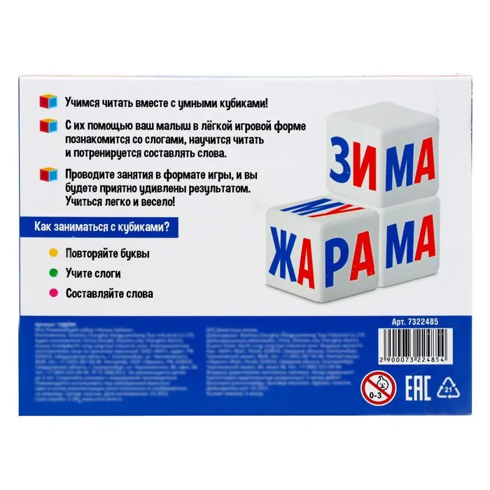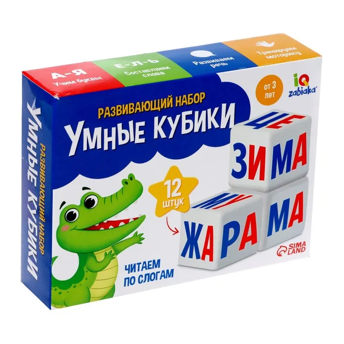 Развивающий набор «Умные кубики», читаем по слогам, 12 кубиков, пластик — Характеристики