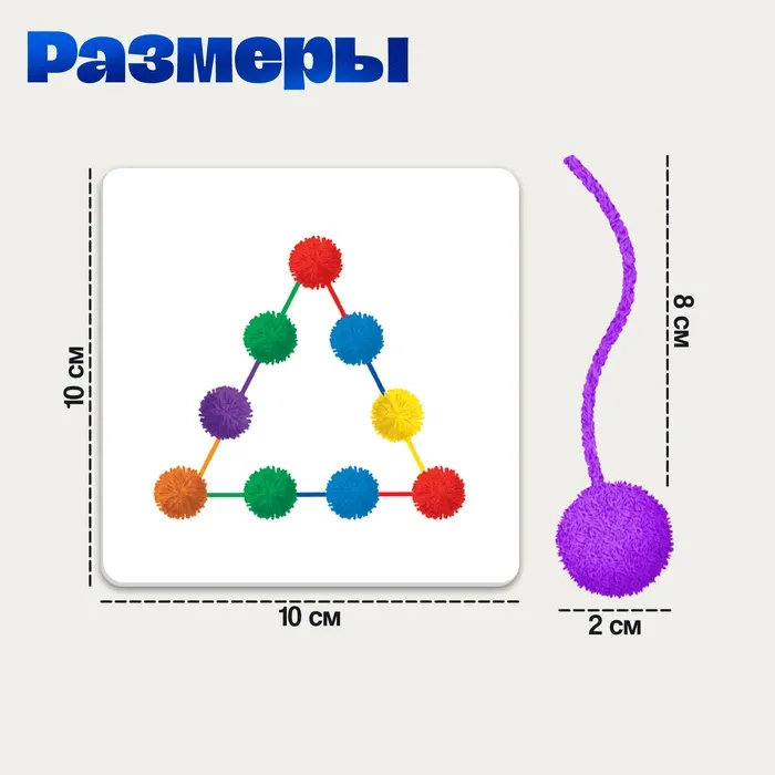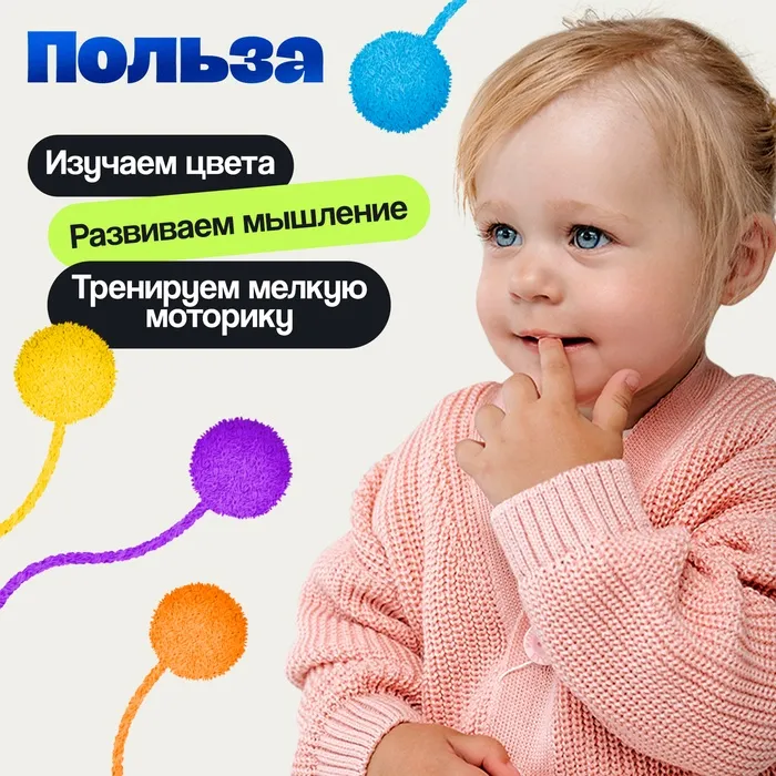 Набор «Умные мячики» — это увлекательное и полезное занятие для детей от 3 лет, созданное по методике Фридриха Фрёбеля. С его помощью ребёнок развивает кругозор, логику, память и координацию, играя с яркими мячиками на шнурках.