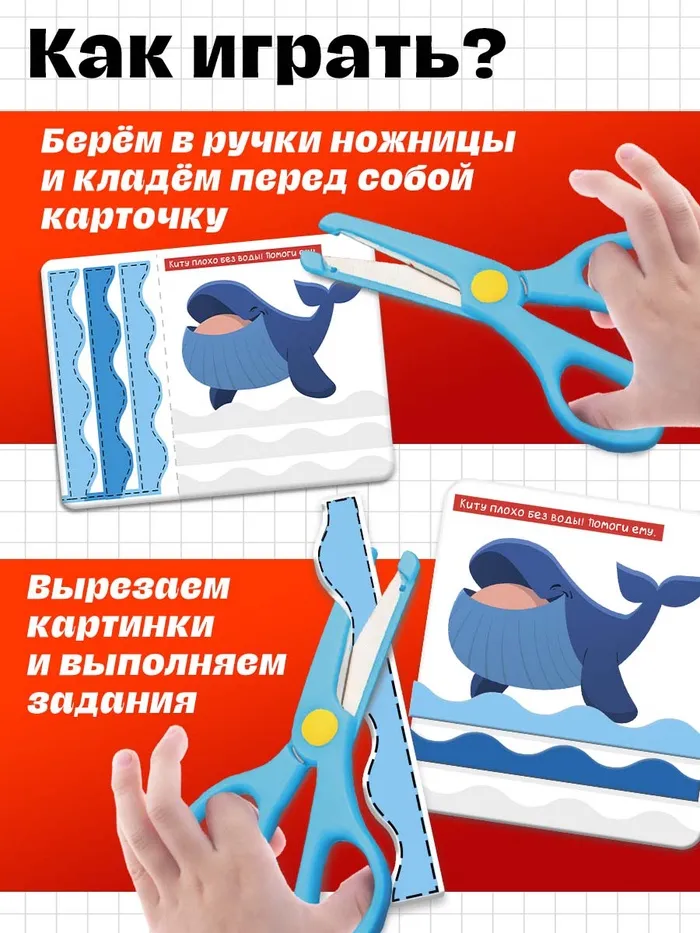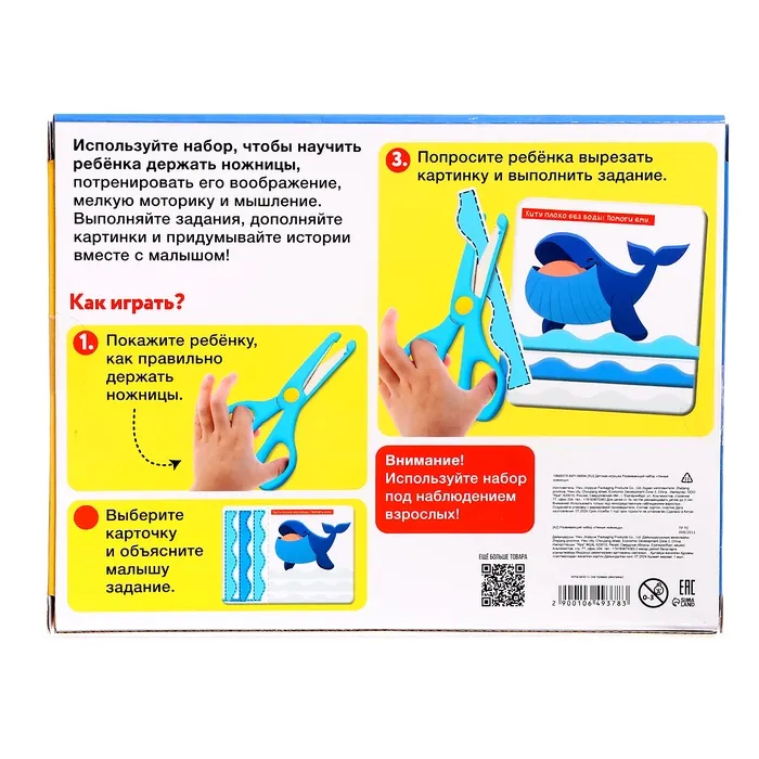 Развивающий набор «Умные ножницы», 40 карточек с заданиями, безопасные ножницы, 3+ — Характеристики