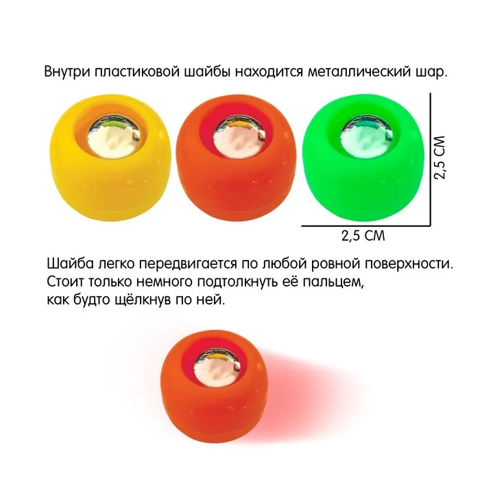 Внутри вы найдёте игровое поле, 5 шайб, 5 ворот и 10 заданий.
