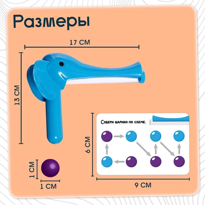 - Покажите малышу принцип работы слоника. Чтобы собрать шарики в хобот слона, нужно надавить трубкой (хоботом) слона на шарик. Чтобы опустошить слоника, нажмите на рычаг на ручке и переверните слона хоботом вверх.