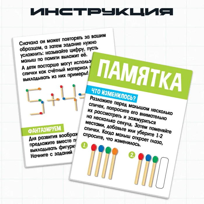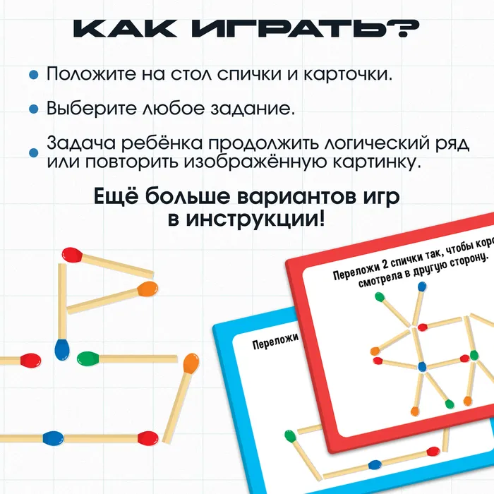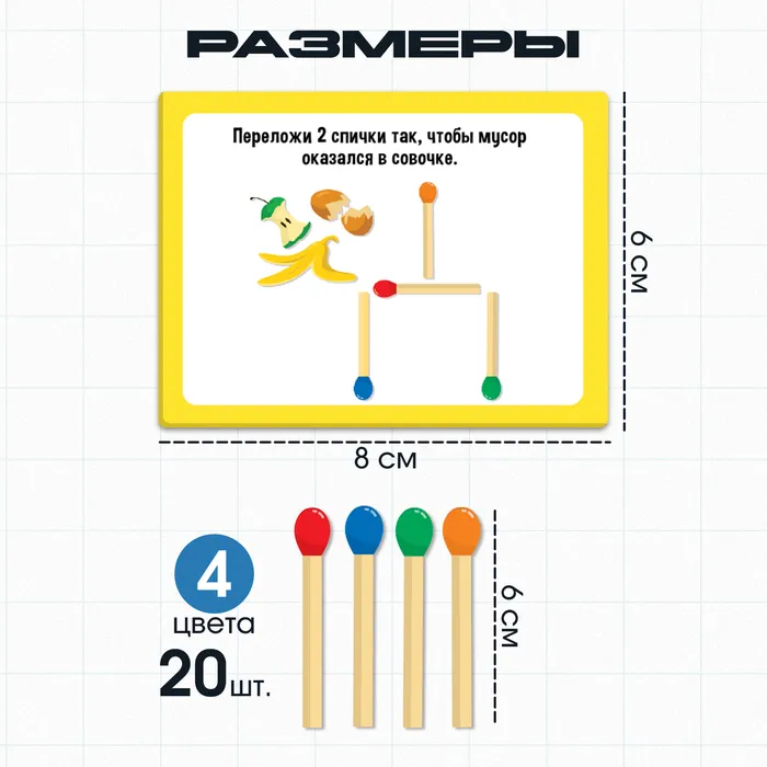 В комплекте 20 спичек и 20 заданий.