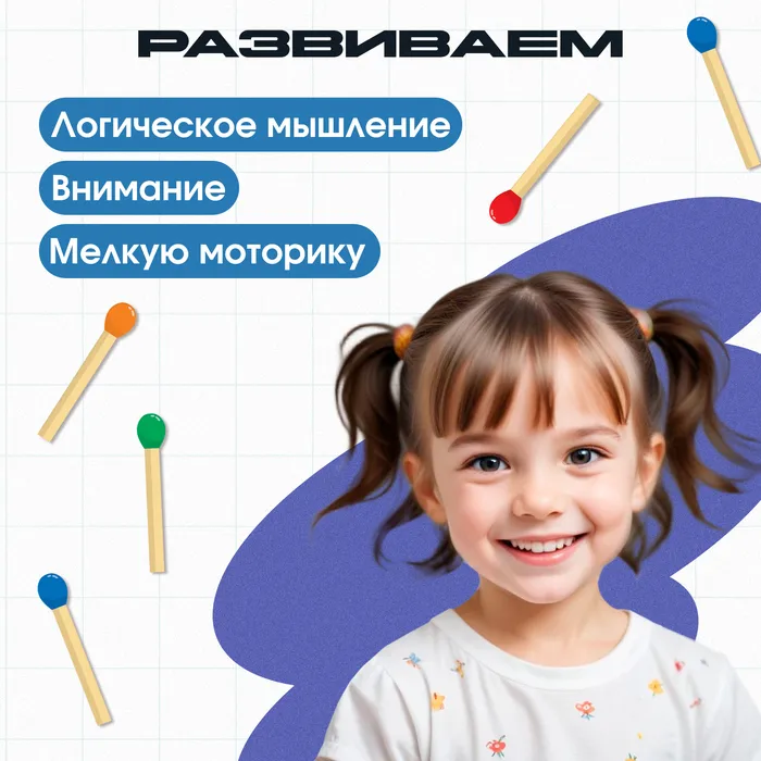 Развивающий набор «Умные спички» создан специально для развития логического мышления и воображения. Малыш научится находить нестандартные решения и потренирует мелкую моторику!