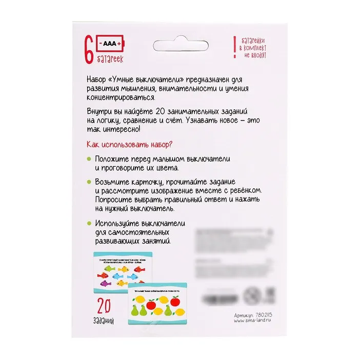 Развивающий набор «Умные выключатели» — Характеристики