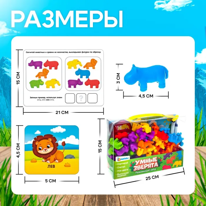 Весёлые зверята ждут вашего малыша для выполнения интересных заданий. Карточки с описанием каждого зверька помогут малышу узнать больше о мире животных.