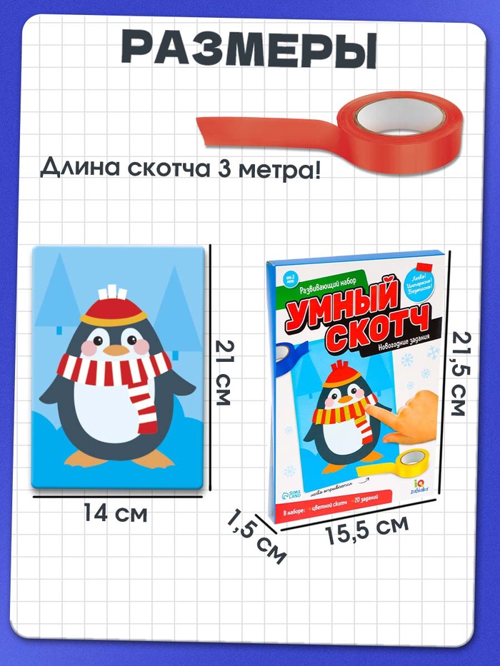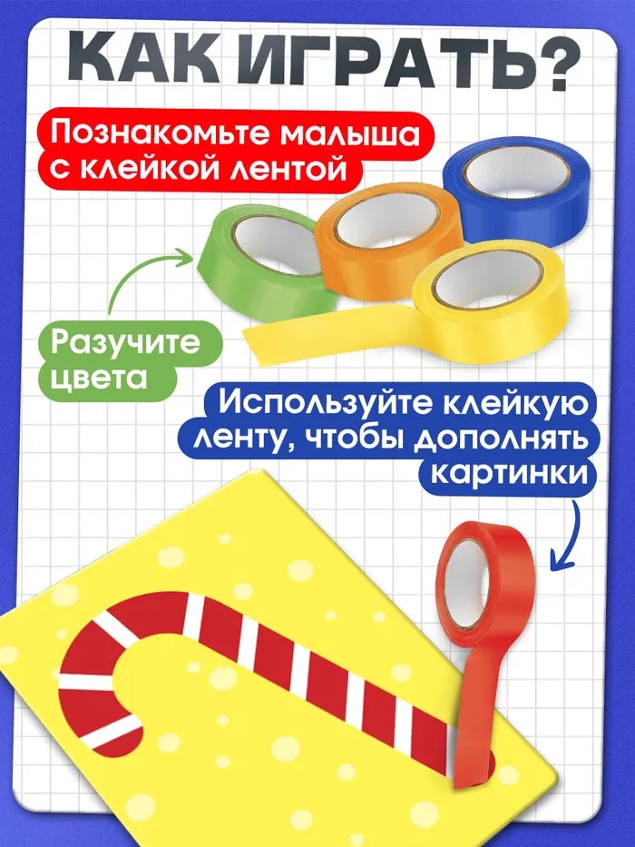 Развивающий набор «Умный скотч. Новогодние задания», 20 заданий, 3+ — Характеристики