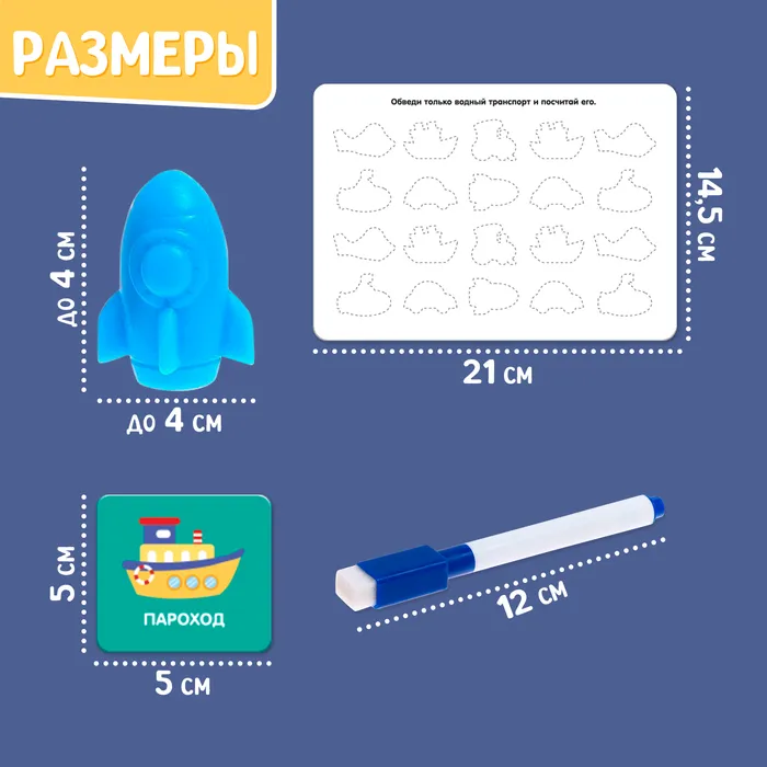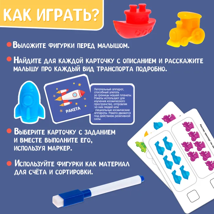 Развивающий набор «Умный транспорт», сортер, задания на карточках, маркер — Характеристики
