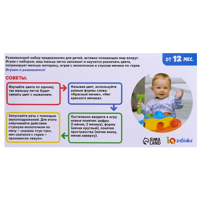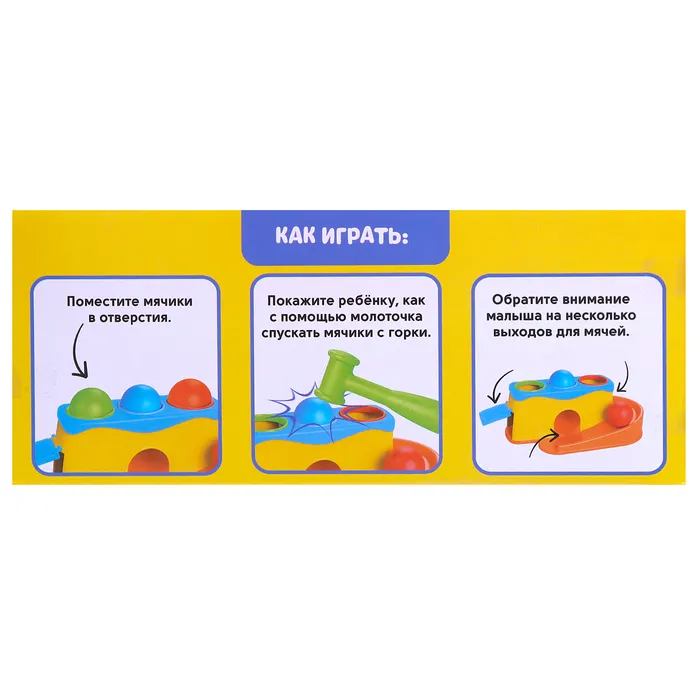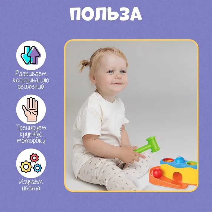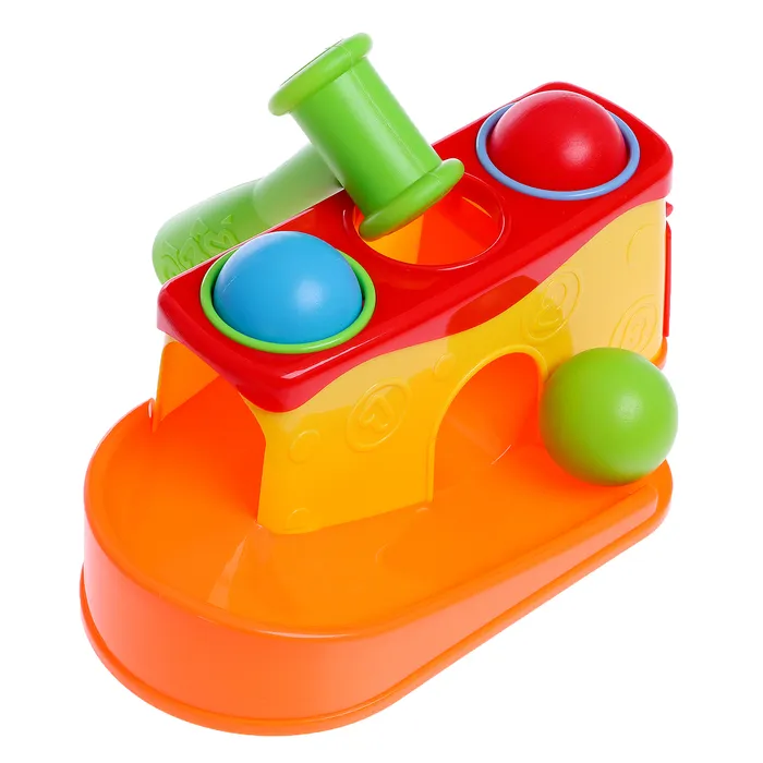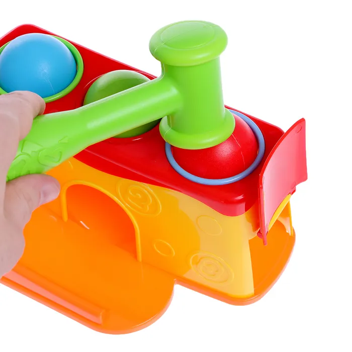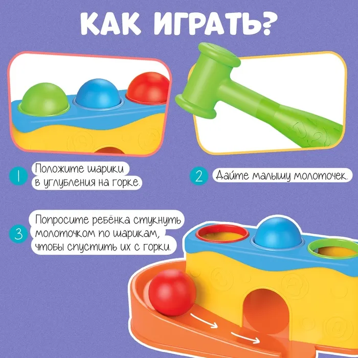Игра с горкой и молоточком помогает малышу развивать мелкую моторику и учит его координировать движения. Ребёнок с удовольствием будет стучать молоточком, отправляя шарики вниз по горке, наблюдая за их движением. Это не только весело, но и полезно для его развития.