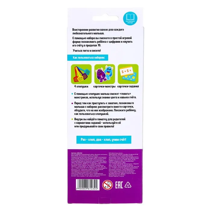 Развивающий набор «Весёлые хлопушки», 20 карточек, 3+ — Характеристики