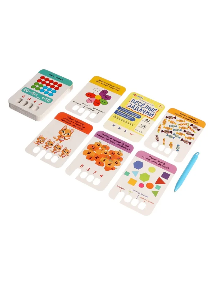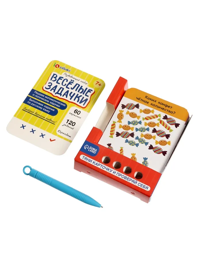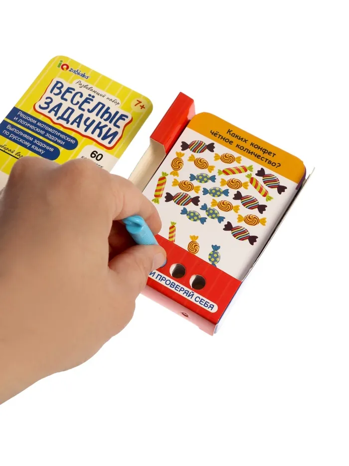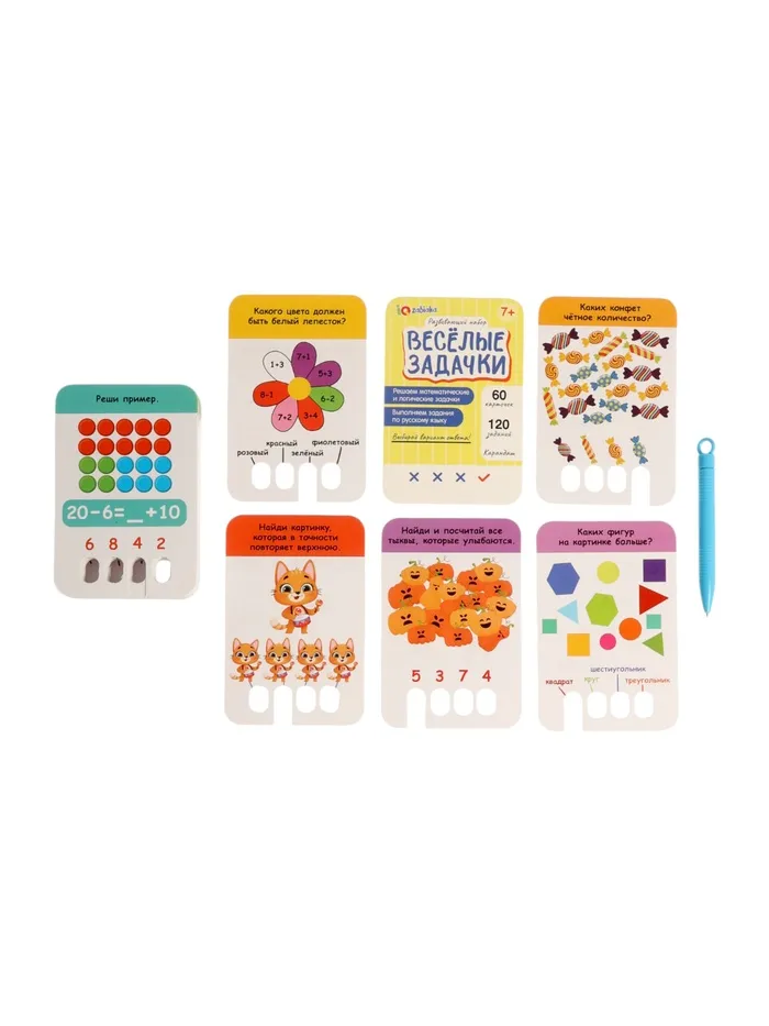 Математика, логика и русский язык — в одной коробке! Набор «Весёлые задачки» — это 60 карточек с увлекательными заданиями для младших школьников. Решайте задачи, проверяйте ответы карандашом и учитесь с удовольствием!
