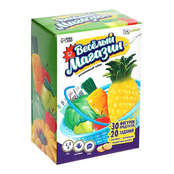 С развивающим набором «Весёлый магазин» ребёнок прокачает логическое мышление, расширит кругозор и словарный запас, потренирует мелкую моторику и научится считать.