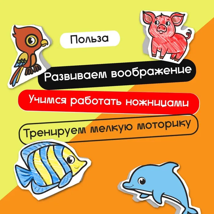 Игровой формат помогает ребёнку тренировать мелкую моторику, развивать усидчивость и концентрацию. Раскрашивание формирует чувство цвета, а вырезание учит координации движений.