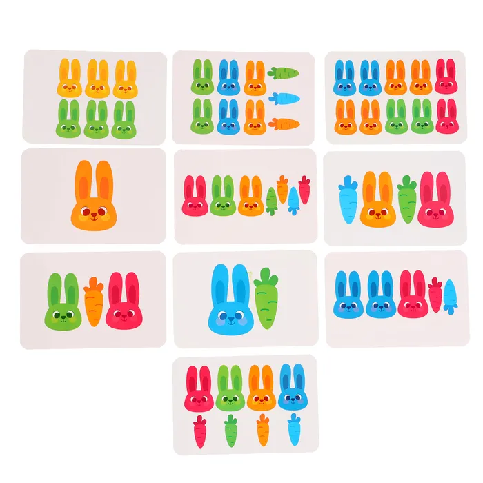 Развивающий набор «Зайкин домик» предназначен для обучения ребёнка счёту, умению ориентироваться в пространстве и различать цвета. С помощью забавных зайчиков, живущих в домиках, малыш потренирует внимательность и умение складывать и вычитывать числа.