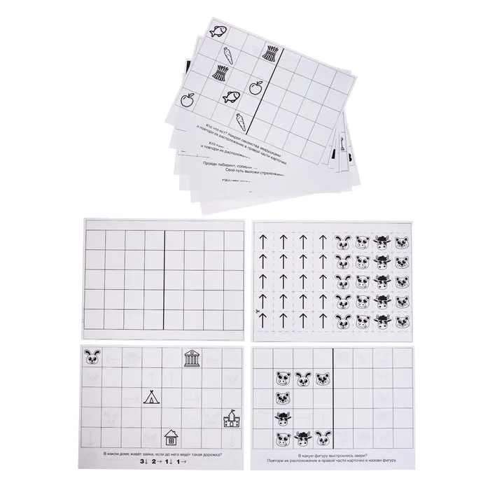- Расставьте стрелочки в левой части карточки и дайте ребёнку задание зеркально повторить их расположение справа.