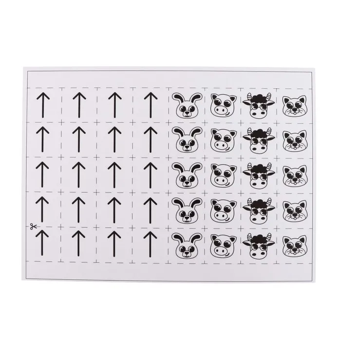 - Во время занятия проговаривайте, куда смотрит стрелочка. Например: «Моя стрелочка смотрит влево, куда смотрит твоя стрелочка?».