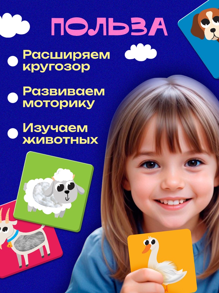 Развивающий набор «Животные фермы», тактильные карточки — Характеристики
