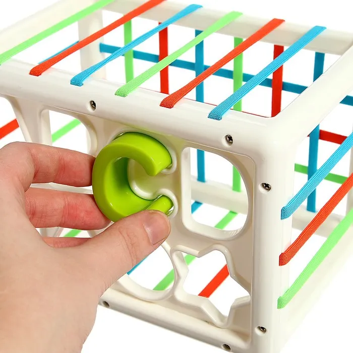 - Стены сортера выполнены из текстильных шнурков, чтобы было удобно доставать фигурки.