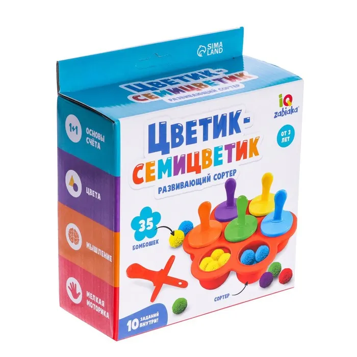Развивающий сортер «Цветик-семицветик» поспособствует развитию логического мышления, памяти, мелкой моторики и внимания.