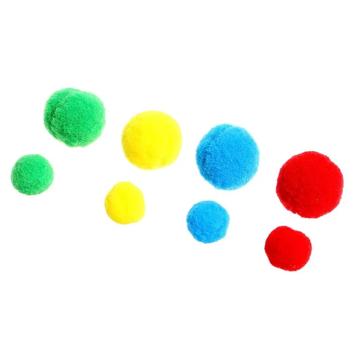 - Разложите все бомбошки перед малышом и расскажите, какого они цвета и размера.