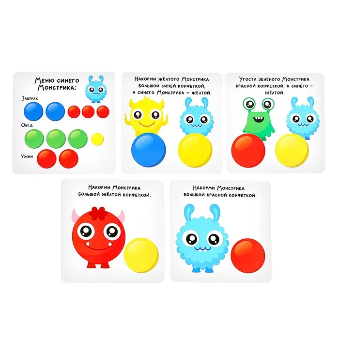Развивающий набор «Цветные бомбошки» поможет малышу научиться сортировать предметы по размерам и цветам. А комплект умных карточек сделает игровой процесс ещё более интересным и занимательным!