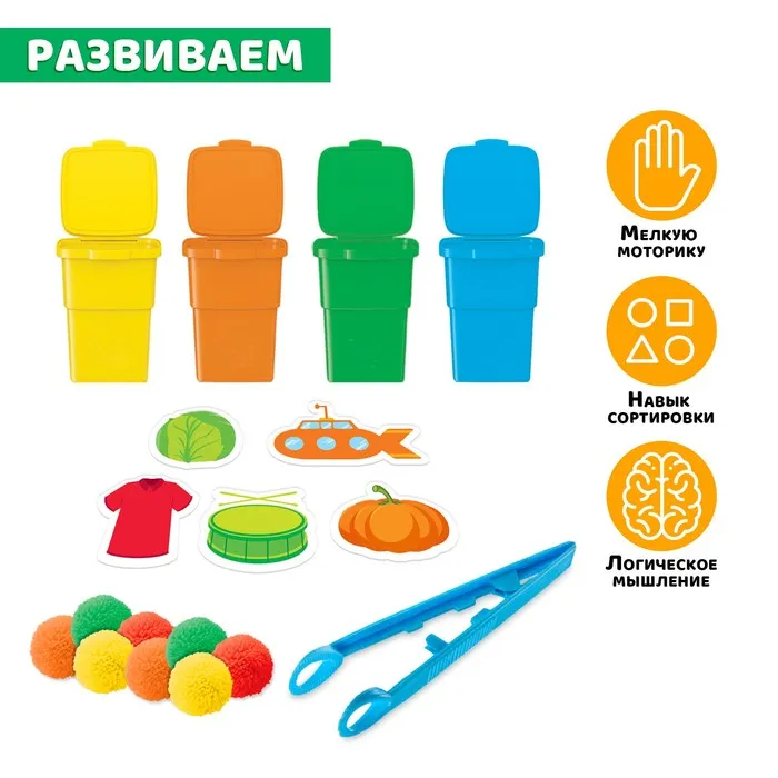С такой игрой ребёнок выучит основные цвета, расширит кругозор, потренирует внимание, логическое мышление, память и мелкую моторику.