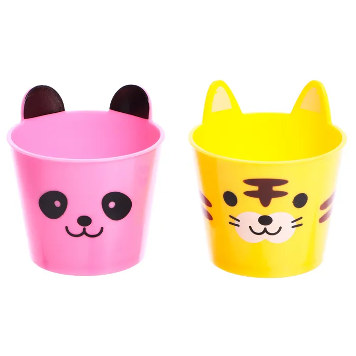 - Выложите перед ребёнком карточки. На каждой изображено что-нибудь, что относится к конкретному животному. Попросите малыша разложить их по ведёркам с мордочками.