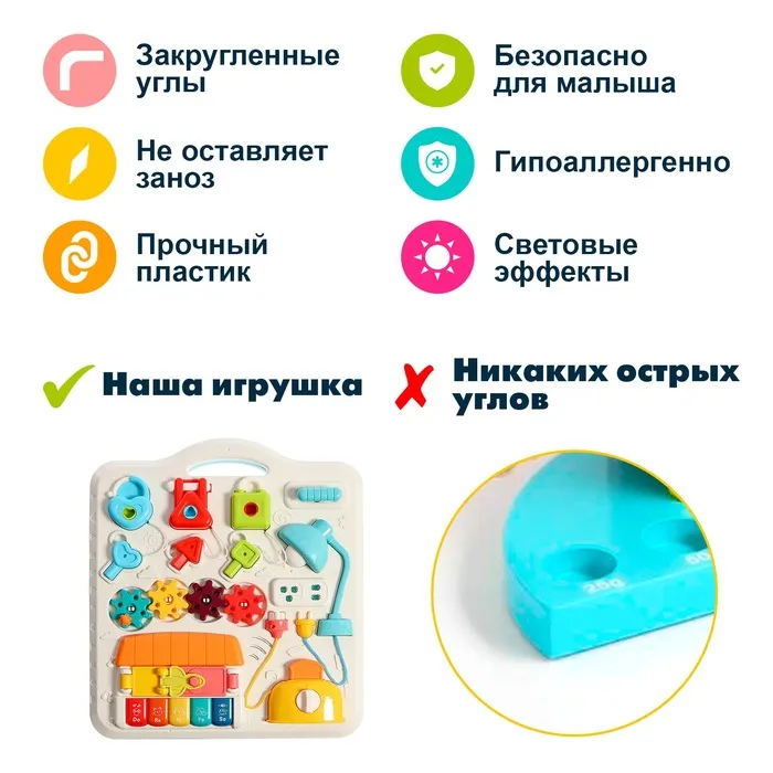 Развивающий столик-бизиборд «Умный малыш», звуковые эффекты, работает от батареек — Характеристики