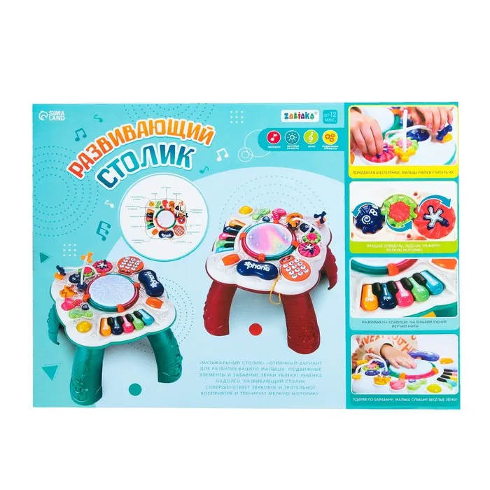 Развивающий столик создан специально для самых маленьких деток. Игрушка привлечёт внимание интересной конструкцией и надолго займёт малыша благодаря множеству полезных функций. Столик не только развлечёт ребёнка — с ним можно осваивать новые навыки!