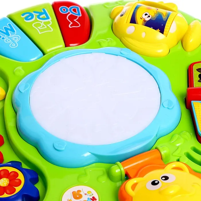 С весёлой игрой малыш научится узнавать животных, различать цвета и формы. Можно перелистывать книжку-малышку, играть на миниатюрном пианино, стучать по звонким барабанам, смотреться в забавное зеркало, расставлять по своему желанию фигурки.